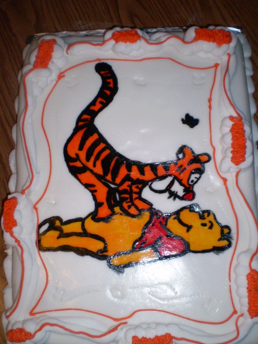 Fondant with buttercreme borders handpainted tigger and pooh