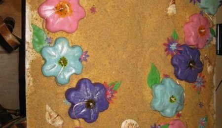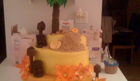 Golf themed cake. The frog is laughing at you bc the golf ball landed on the lilly pad! The sand is made out of brown sugar, water from frosting and everything else is sculpted from fondant. Except for the flag pole it's all edible!