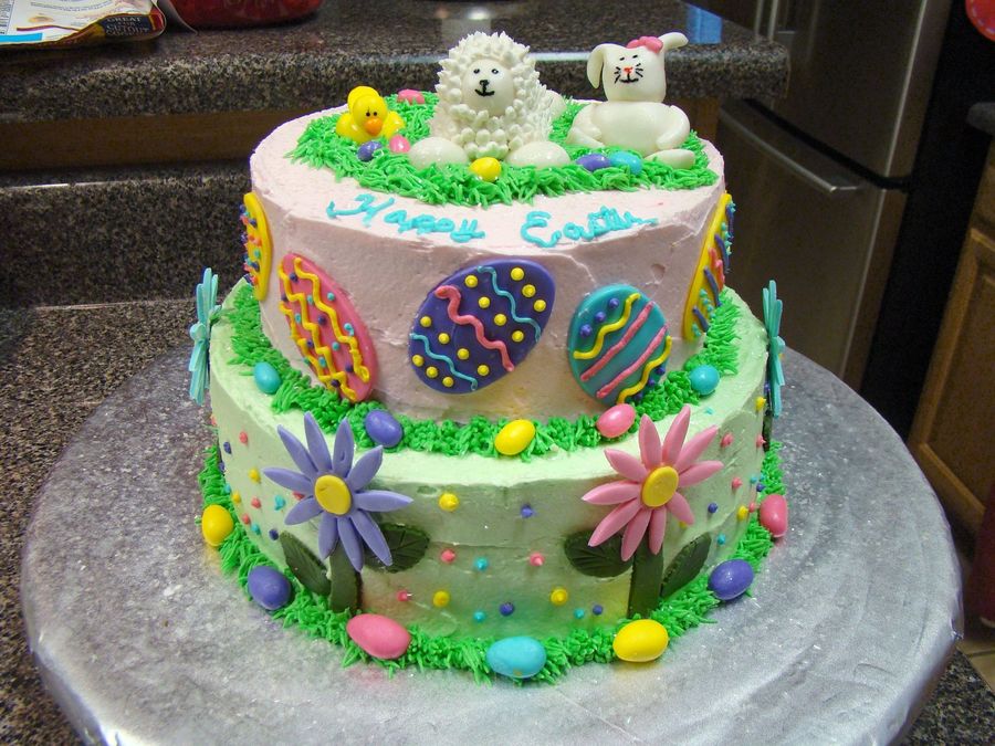 Easter Cake for daughter's Pre-K party. White cake, buttercream, fondant accents. Thanks for looking. :)