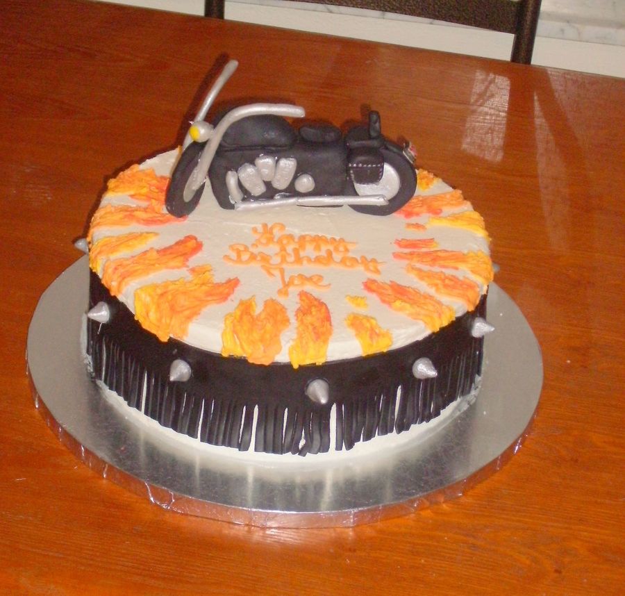 12" round 1/2 &1/2 cake with B/C,the motorcycle is rice crispy and fondant