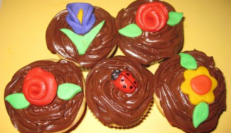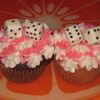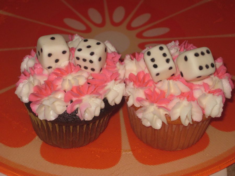 fondant dice, chocolate and strawberry cupcakes with bc frosting