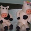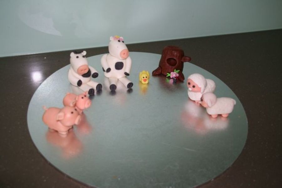 These are the animals to go on a 2 tier christening cake, but i wanted the practice covering a cake I used one I had here and place the animals on it so I could see what it will look like.