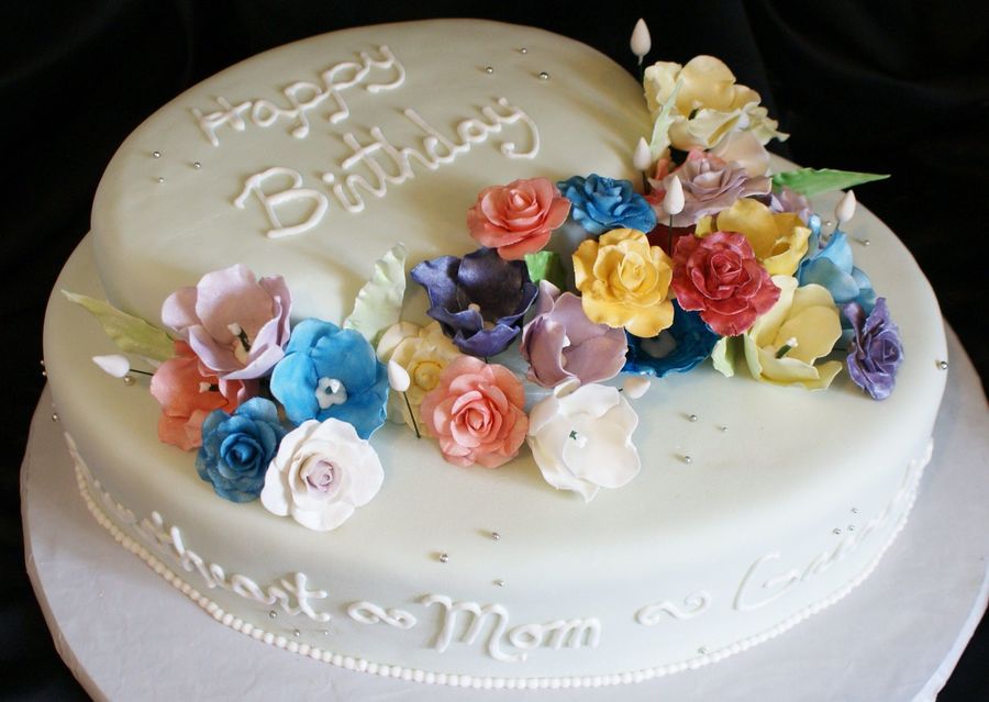 this is a birthday cake I made for my Grandmas birthday this year. the flowers took me 20 min each. I hope I will get better as I do more, I would like to know how long it takes those of you who have done them a lot. thanks for looking.