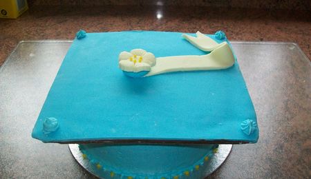 Blue And Yellow Single Flower Graduation Cake