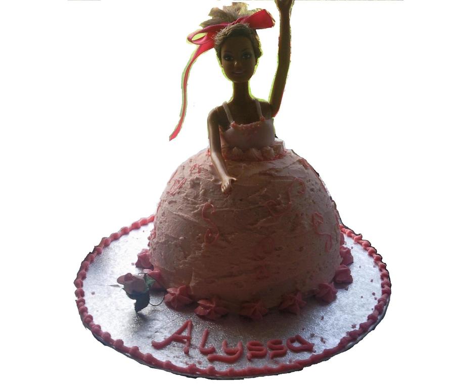 A massivly imporvised cake!! 1. I used a real barbie that had its legs cut off 2.The cake was made in a Pyrex Mixing Bowl 3.I didnt have much of a plan and jst went for it!!