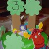 This cake was for a friends little boys 3rd birthday. The characters are gumpaste and fondant. The trees and flowers are all gumpaste, and the houses our fondant. I think it turned out pretty cute, but i wish it was a little cleaner and smoother. 6in teir and 9 in teir