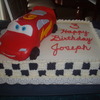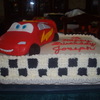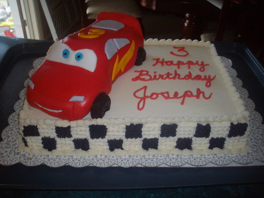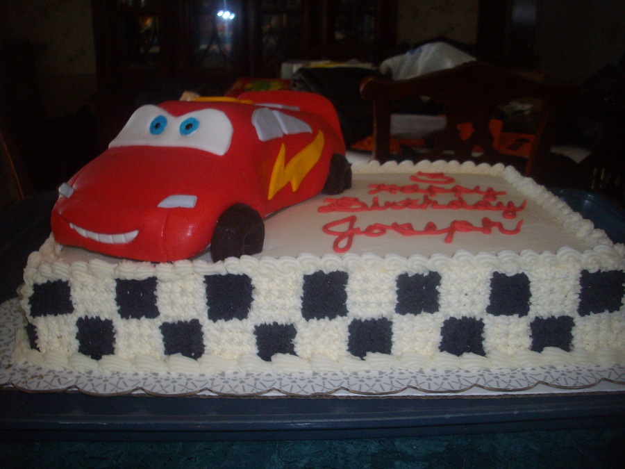 I used the 3-d car cake pan w/marshmellow fondant for the car and piped stars for the checker board pattern on the sides.