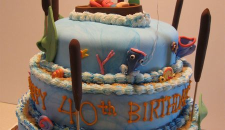 My first try with an airbrush. All fondant, chocolate cake, buttercream and fluff filling
