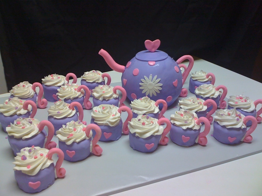 Vanilla cream cheese cake covered in fondant. I used the sports ball pan for the teapot. TFL!!