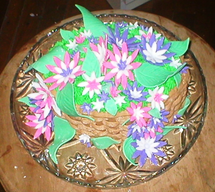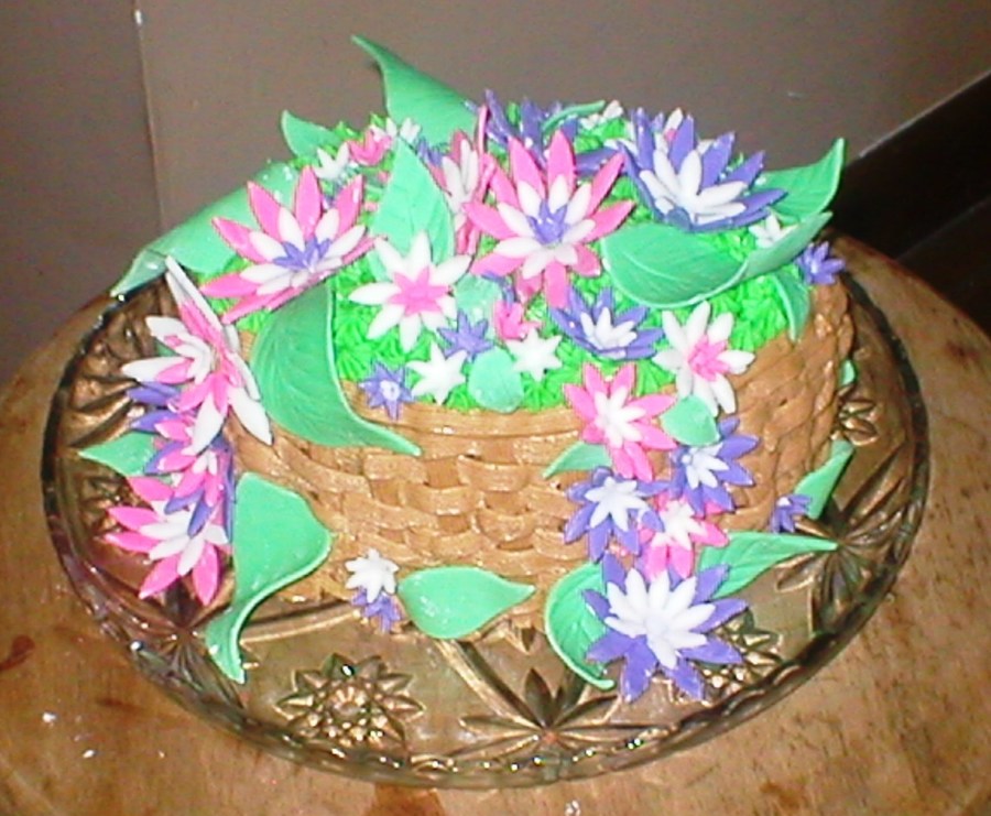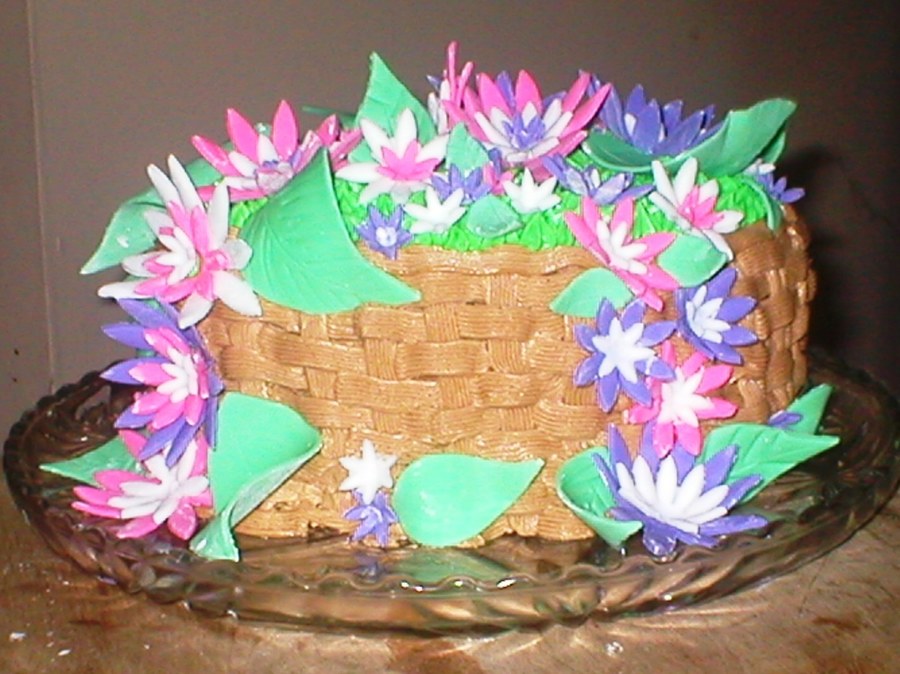 Instead of making a bunny, lamb, cross, etc... I made a basket of fondant flowers last Easter. It was also my first time piping a basket weave!