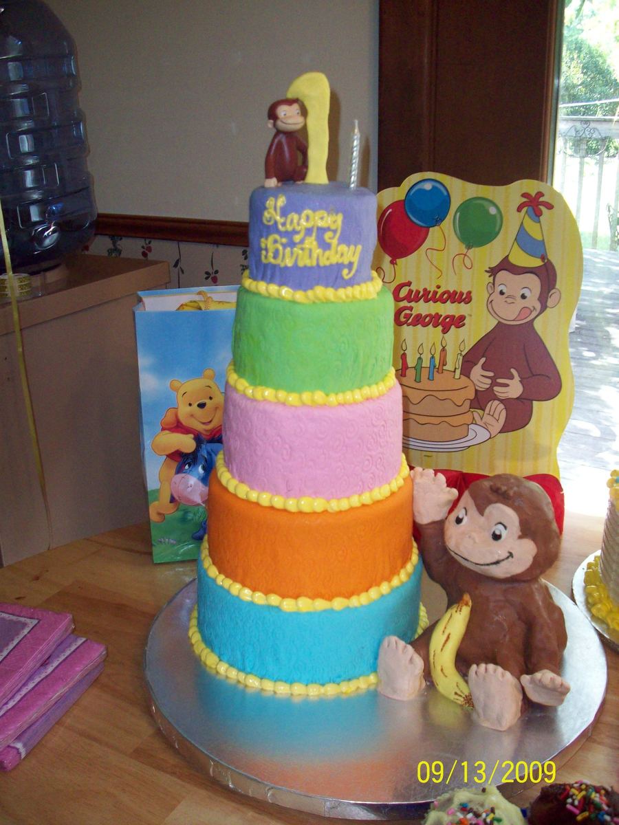 mini fondant tier w/ rice krispie curious george