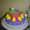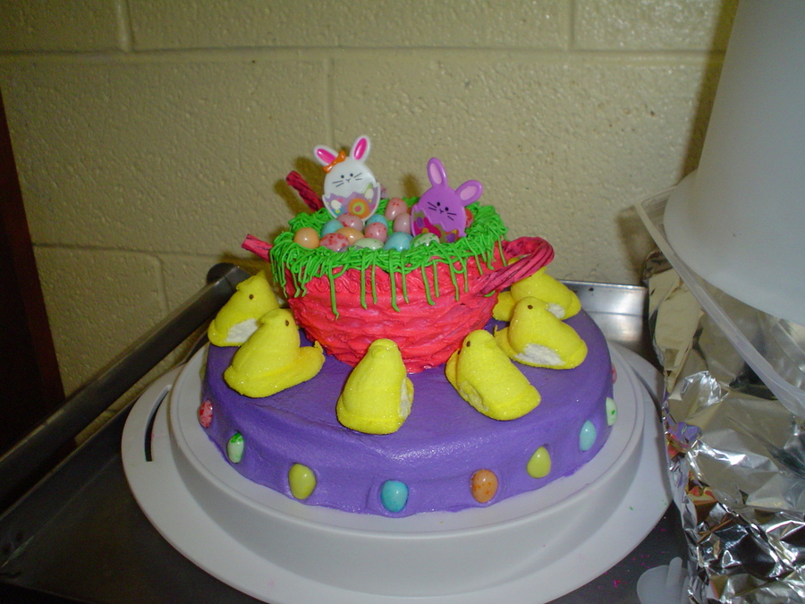 some thing quick i threw together for my sons preschool easter party the basket is a cake that i baked in a small metal mixing bowl just grease and flower the bowl good and it is alot easier and quicker than carving a cake down the kids love it there was nothing left except the two plastic bunnies