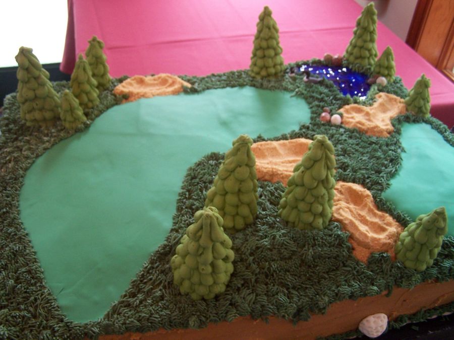 This cake was made for a golfing party. Everything is edible except the flag pole. Mostly buttercream with some fondant accents.
