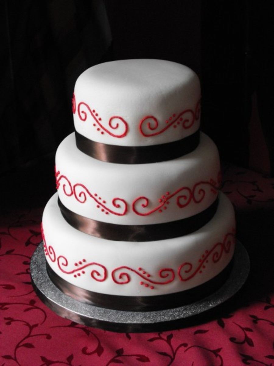 MMF with brown ribbon and red scrolls. This was fro an engagement party.