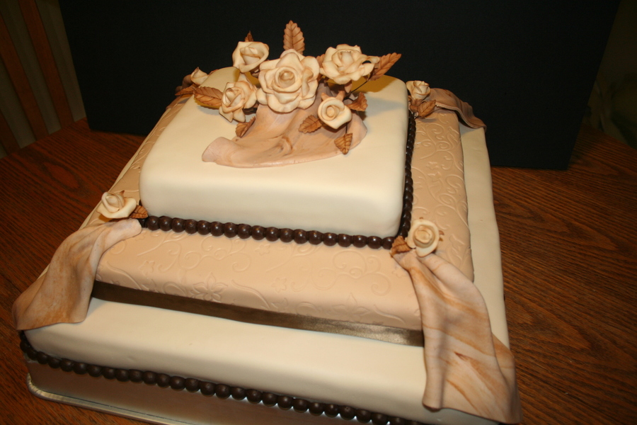 Square cake with fondant and gumpaste roses.