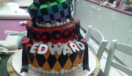this was hand carved from brownies. ( won't be doing that again soon) covered with fondant and hand painted. thanks for looking