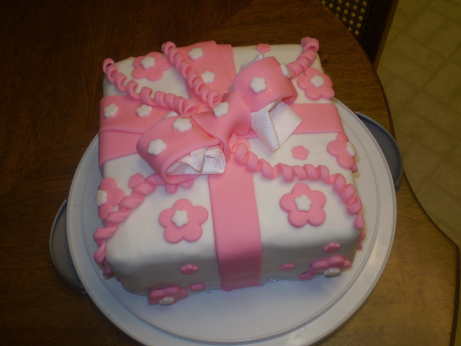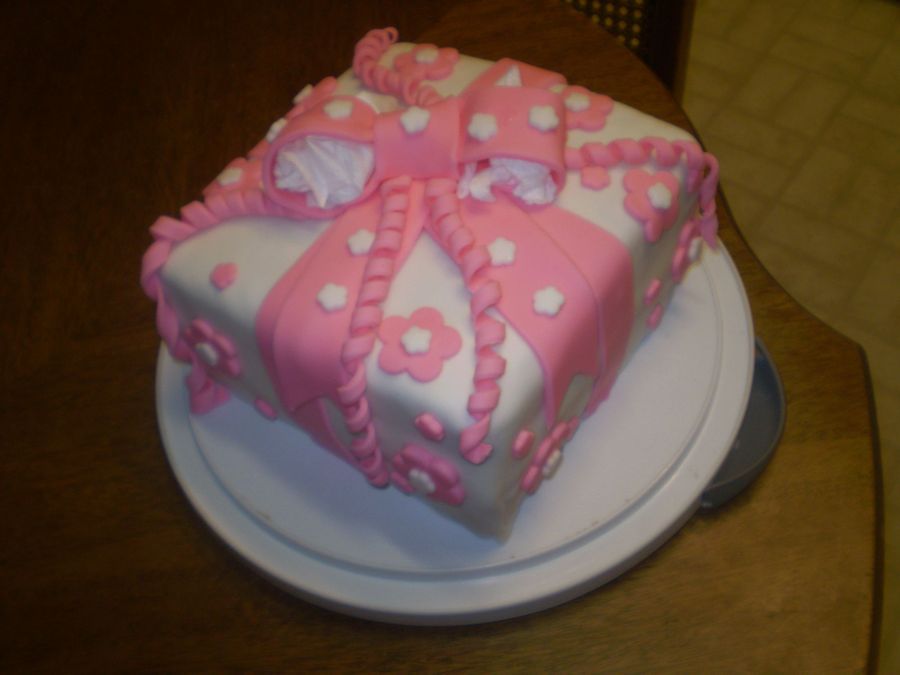 this is my course 3 fondant package cake. i really had fun making this cake. my bow wasn't finished drying out, that's why there's tissue in the loops.