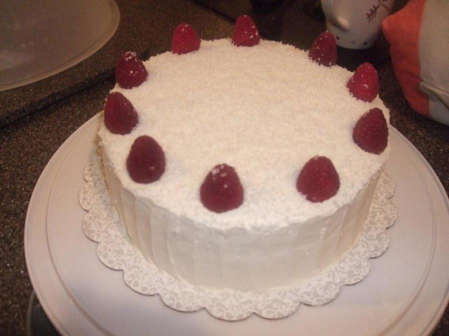Lemon Raspberry cake with white chocolate shavings
