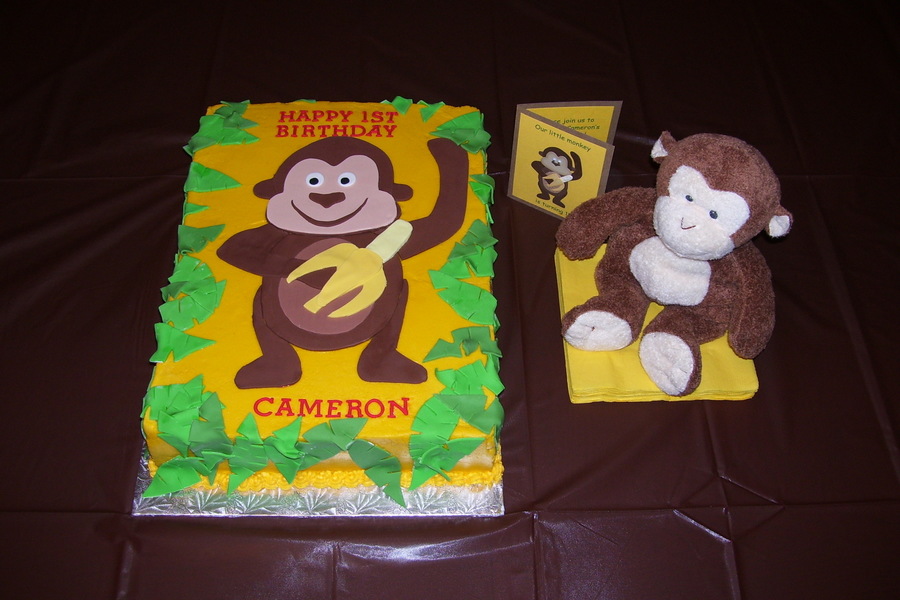 The cake I made for my son's first birthday. I made the cake and the invitation to match - a monkey theme. Thanks for looking.