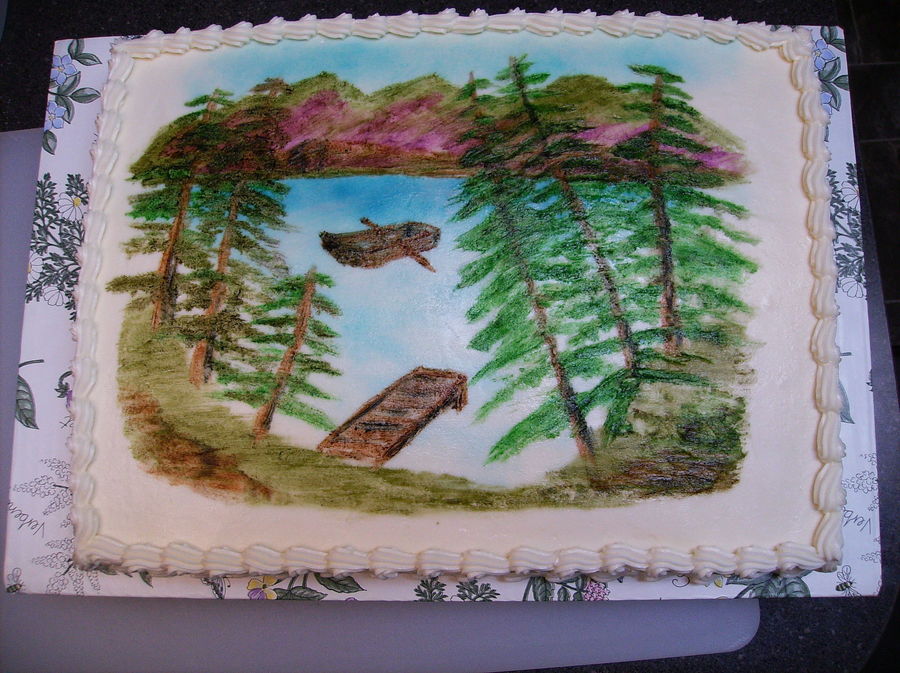This is a cake I made for my father in law. It is retired and enjoys fishing and camping.