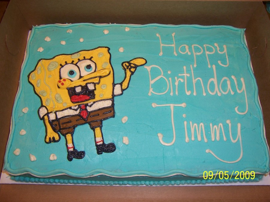 Half sheet cake, yellow with buttercream icing. Spongebob drawn freehand in buttercream. TFL.