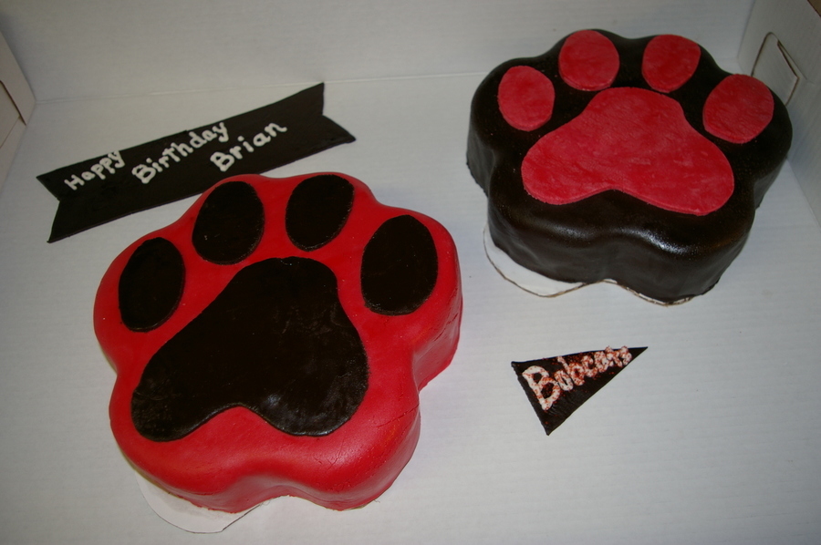 Carved paw prints covered in MM fondant.
