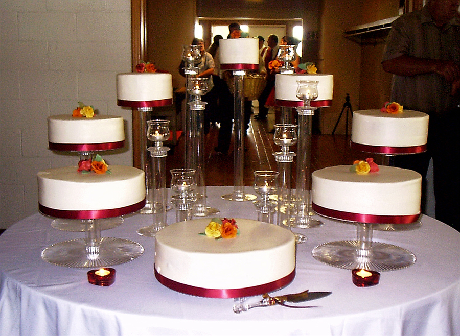 I see a ribbon slipping in this picture. It was fixed after I snapped the photo. This was 1-6", 2-8", 2-10", 2-12" and 1-14" WASC with strawberry cream cheese filling