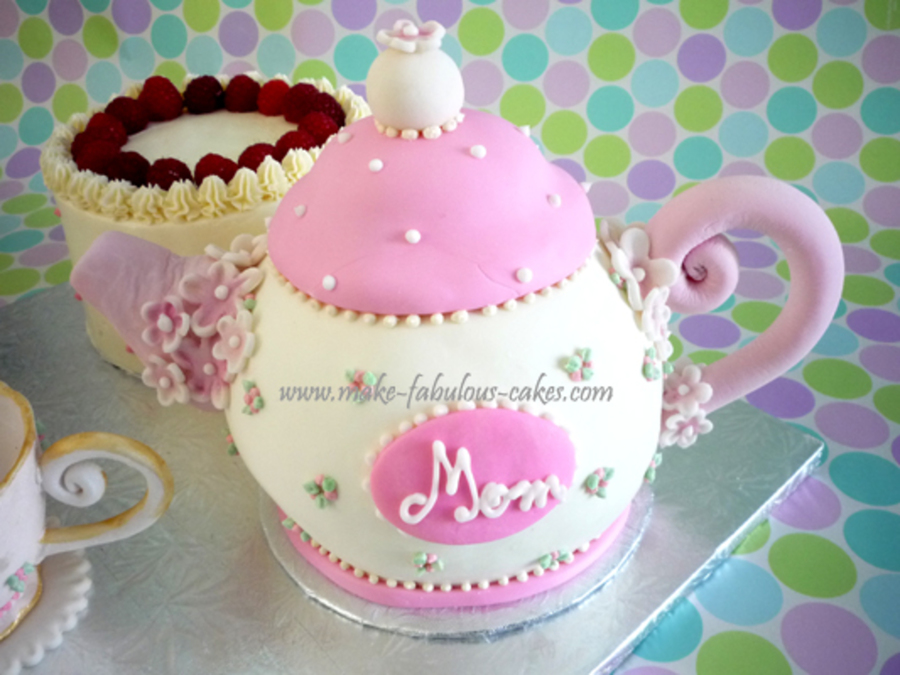 My first attempt at teapot cake and I really enjoyed making it. Teacups made out of gum paste.
