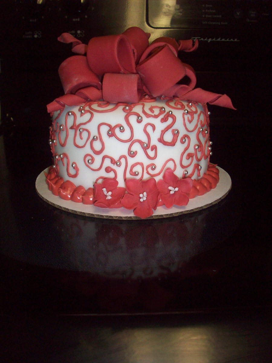 Small Red scroll cake done for a couple celebrating their one year anniversary