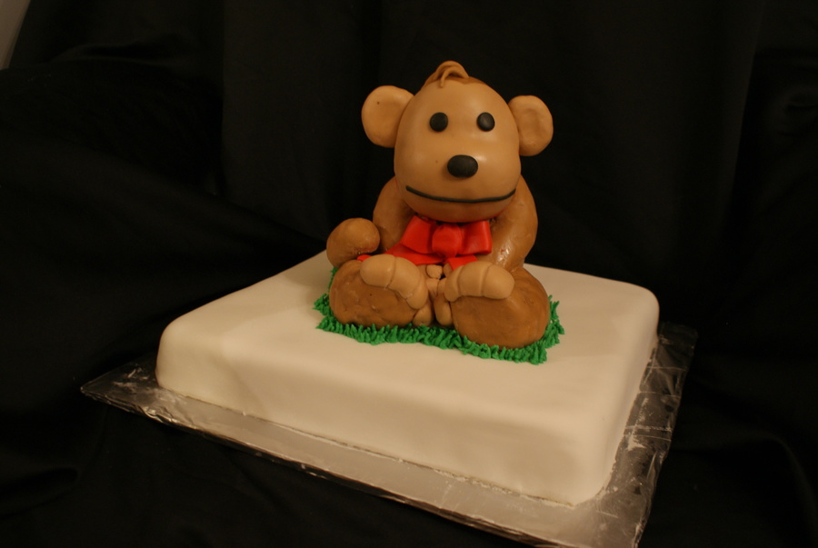 rice krispie monkey on cake
