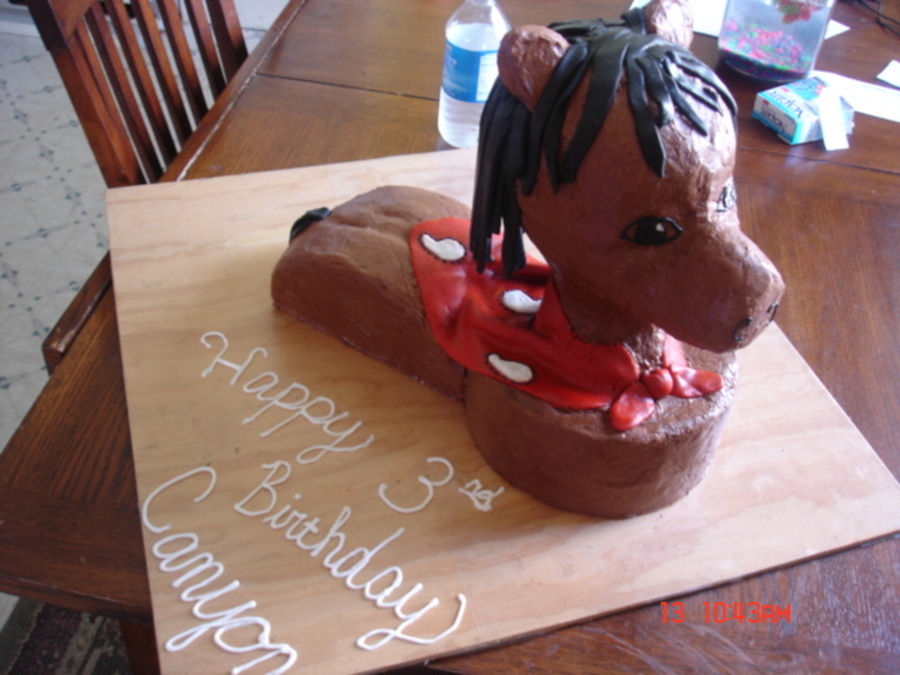 WASC and Chocolate Fudge Cake. Buttercream Icing. MMF Bandana with Buttercream designs. The head is a styrofoam wig head...not edible. For my nephew's 3rd birthday.