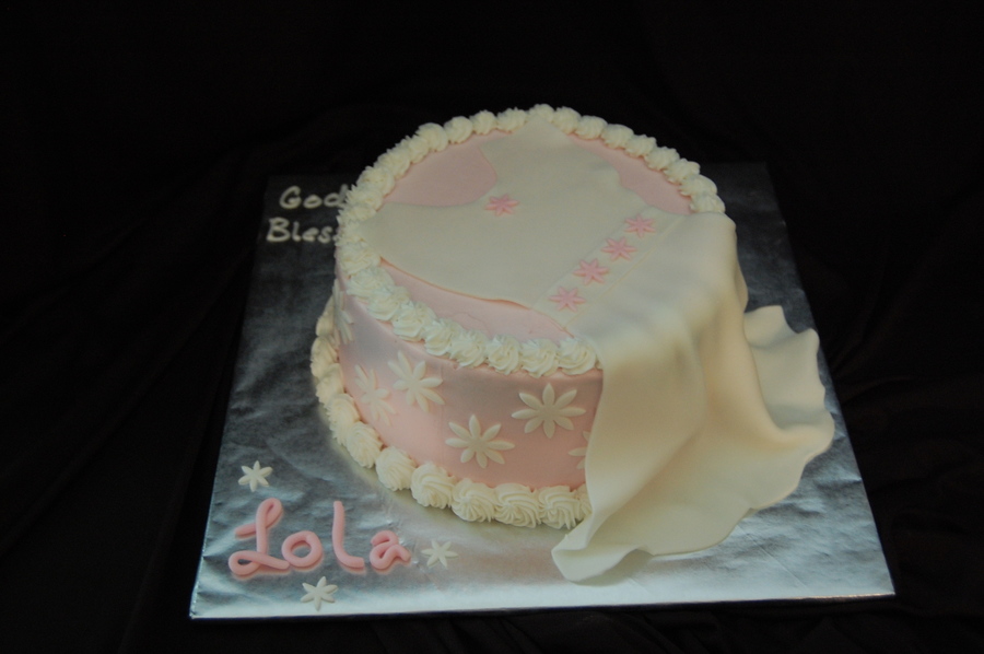 9 inch double rounds. Fondant dress and flowers.