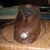 This cake was for my husband's birthday. It was my first attempt at carving a cake and also making chocolate clay to cover one in. The laces are real boot laces. I made the toe to look like his boots always do. lol Thanks to everyone for their help especially Price for the wonderful pictures.