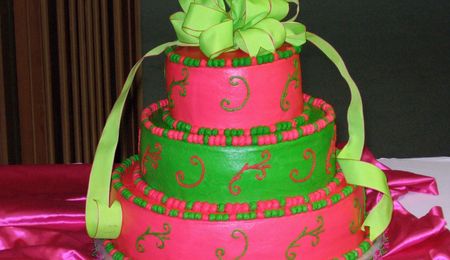 I had a lot of fun with this cake. I did find it a little difficult to put the top ribbon on straight. There is a topper (letter N in brown) but I could not include the picture because it had three men in the background.