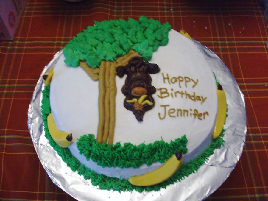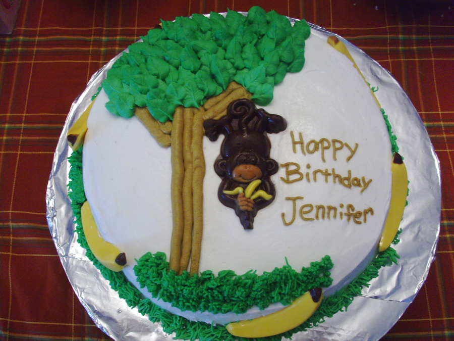 Amaretto and vanilla cake. Chocolate monkey and bananas. Friends birthday cake.
