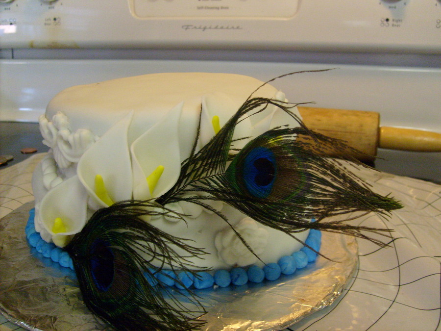 I made my own birthday cake! :) I made the Calla Lillies and appliques from fondant. The cake is also covered with fondant.
