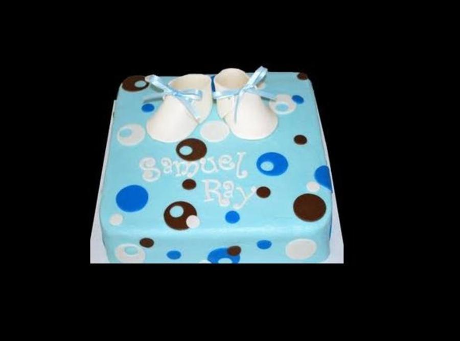 My first cake! Buttercream icing w/ gumpaste booties.