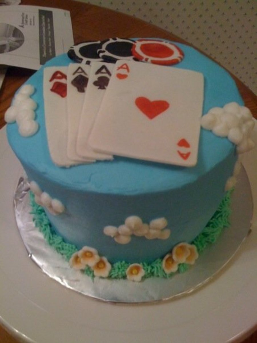 Cake was for my dad who loves to play poker. Cards/chips are made out of gumpaste.