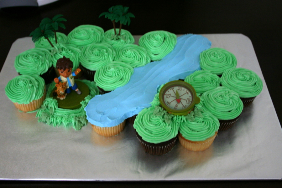 Chocolate and vanilla cupcakes with buttercream frosting and Deigo cake decorating kit I bought online. It went together nice and easy... whew!