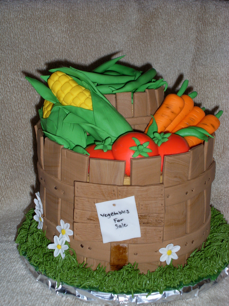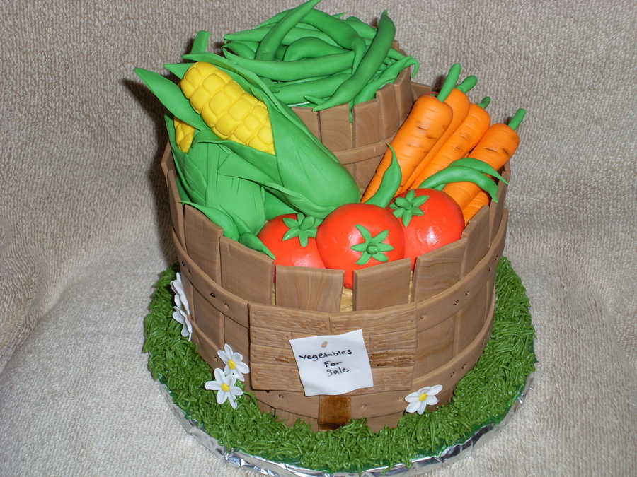 I made this for our state fair cake contest. All of the vegetables are a fondant/gumpaste mix.
