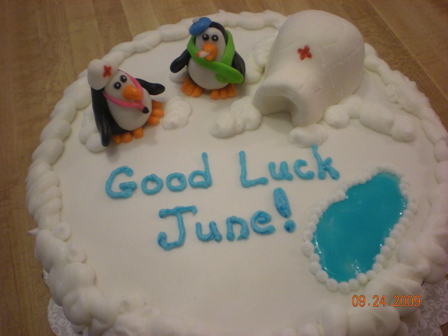 This cake was made for a lady that was quitting her job to go to Alaska on a mission to take care of the sick. She is a nurse, so this is what I came up with. TFL