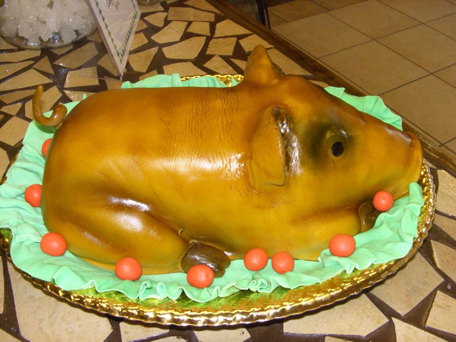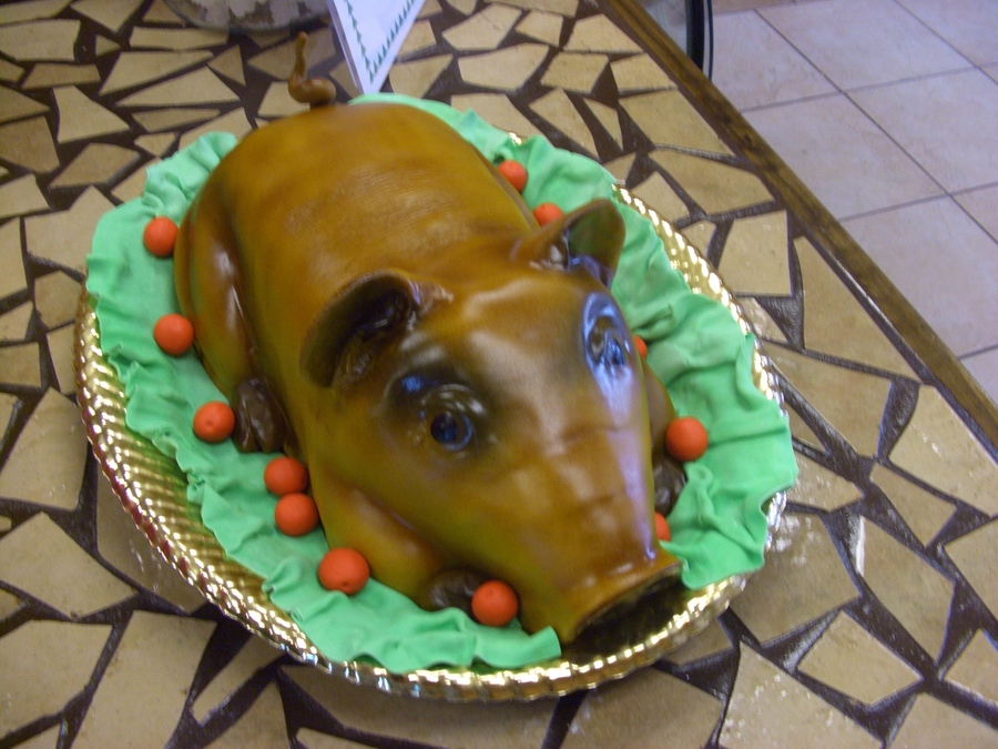 This was done for a Christmas dinner as a centerpiece. Decorated in fondant.