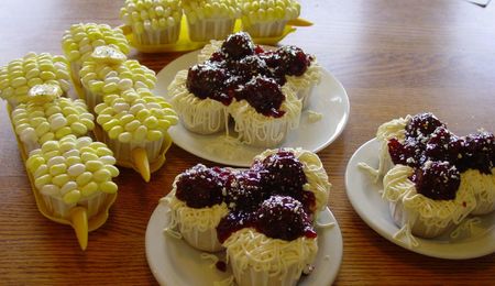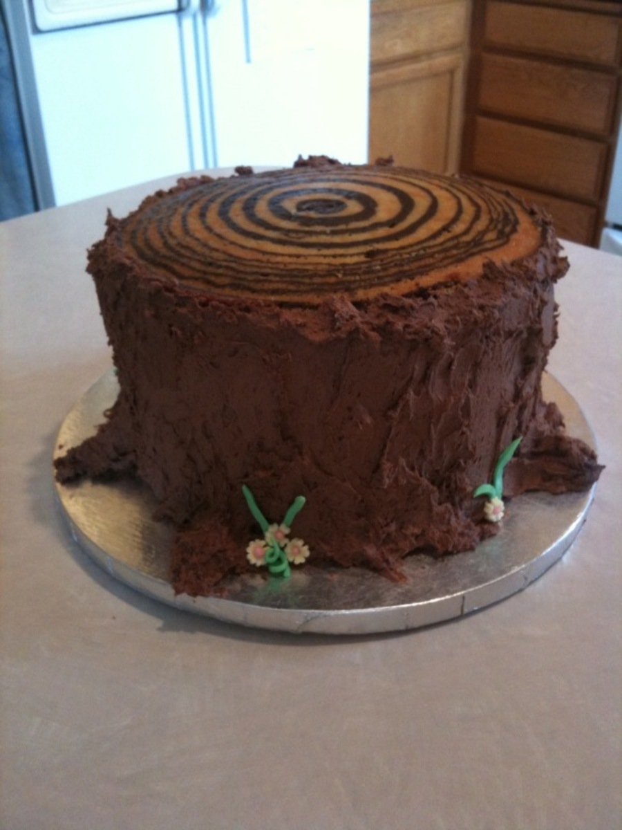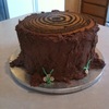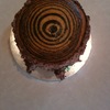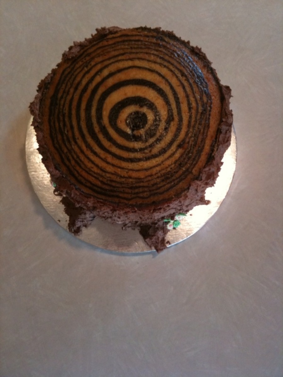zebra cake for the tree rings, chocolate wasc for the trunk.