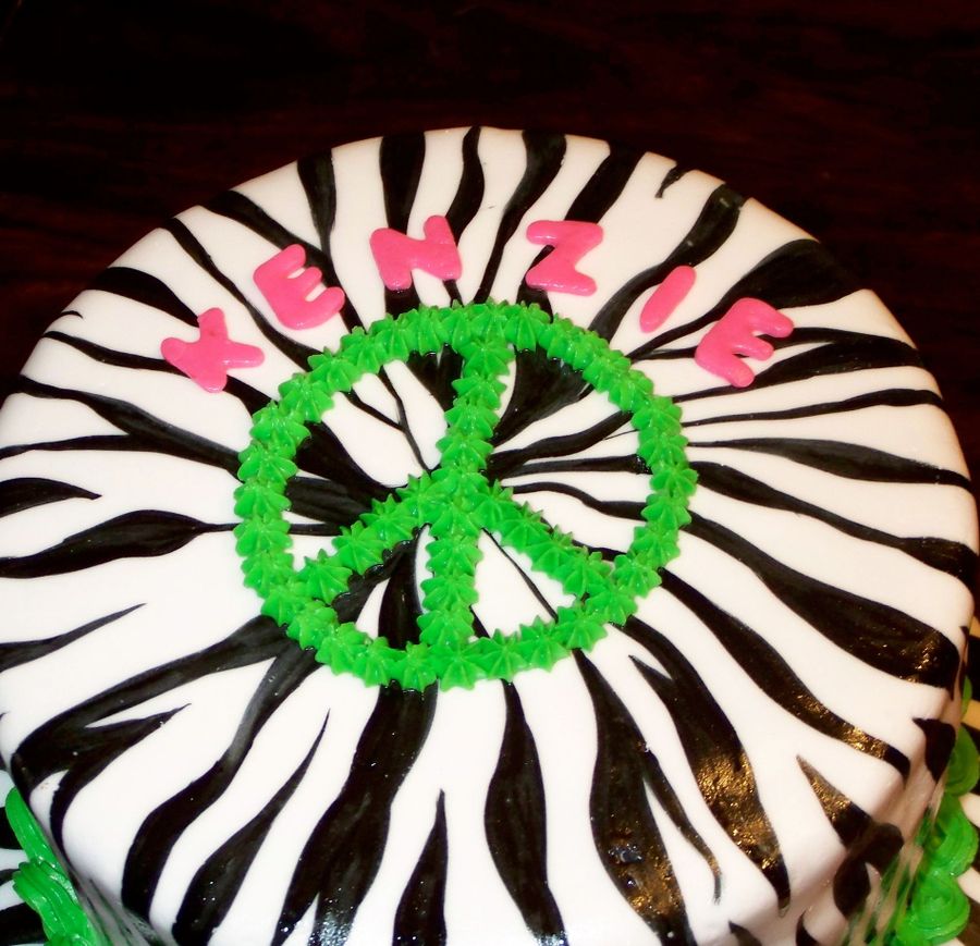 Covered in MMF, border is buttercream. Zebra stripes are hand painted on with food coloring.