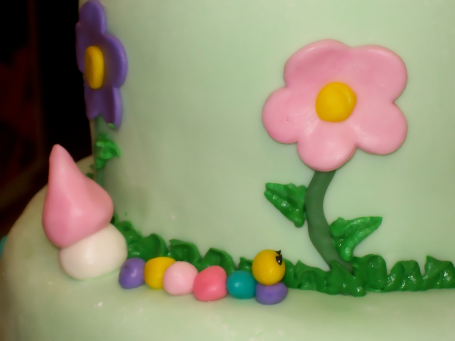 The customer wanted a cake covered with flowers and bugs. Cake covered and decorated with fondant.