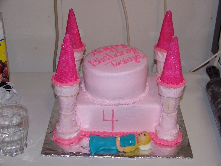 Made with buttercream and ice cream cones. Sleeping Beauty is made of 50/50 gum paste and fondant.
