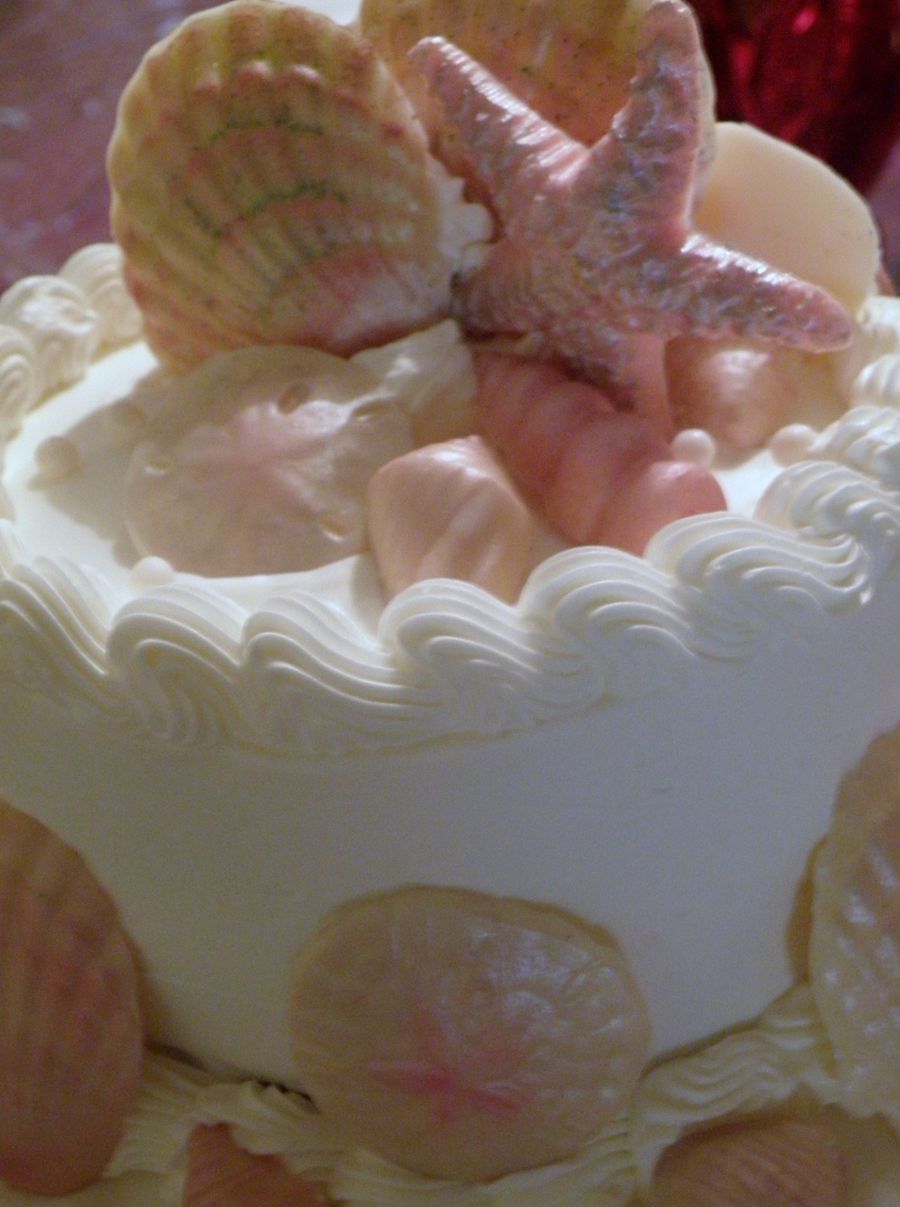 Italian Butter cream, French vanilla cake, pineapple filling and gheradelli chocolate seashells indivdually painted