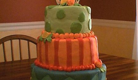 This is a 11 x 15 sheet cake, cut in half & stacked. I also used a 6" round cut in half for the top portion. I looked everywhere for tool candy molds, but couldn't find any in time for this weddding, so plastic tools had to do.