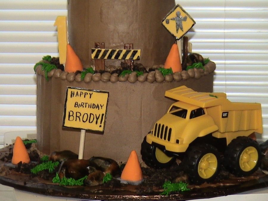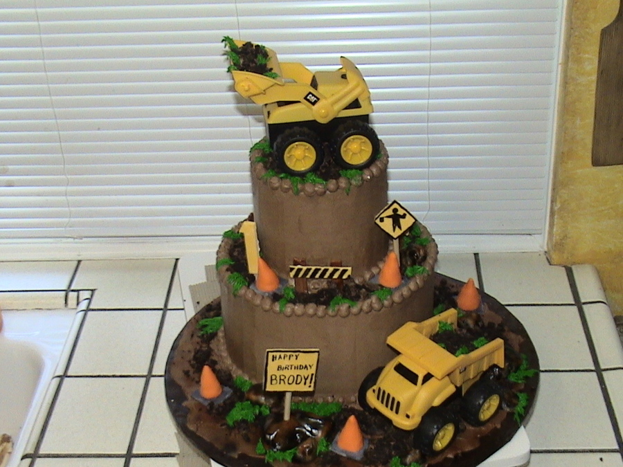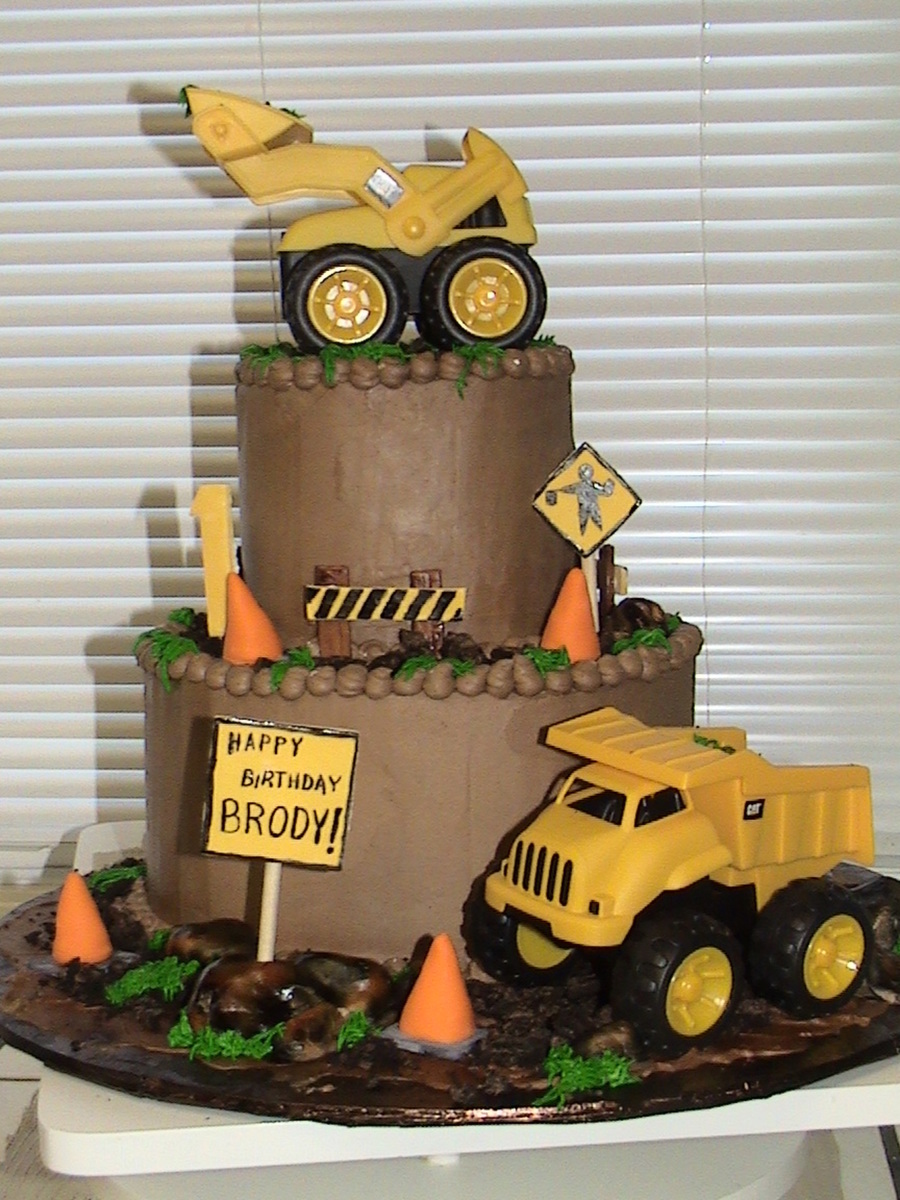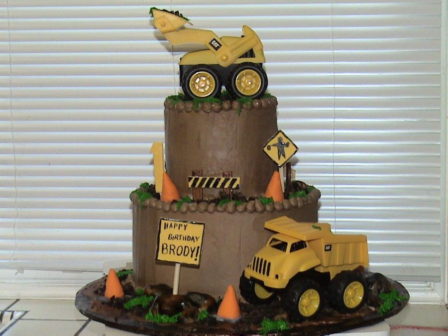 Thank you mooj for the great idea of this construction cake. It was easy and fast. The fun part was that I got to shop for toys and didn't make the trucks from sugar.