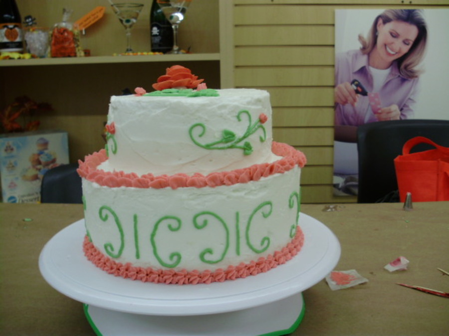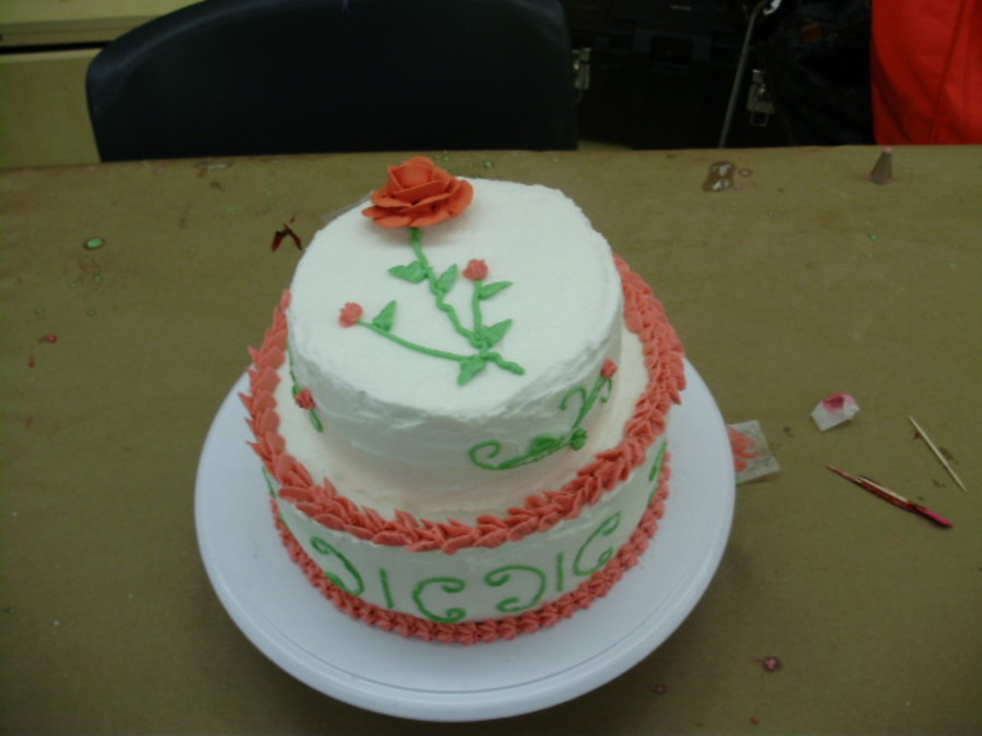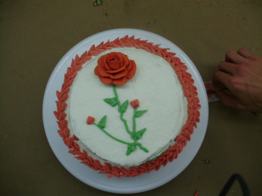Final cake for Wilton Course 1. The rose was made with royal icing.